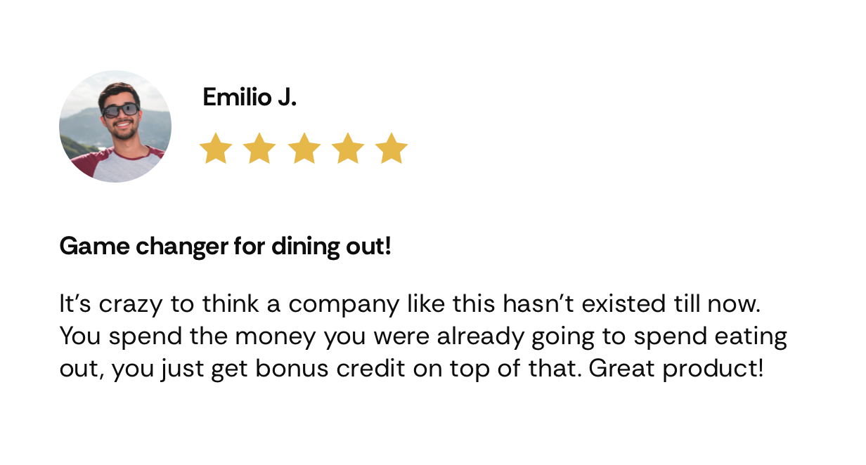 Earn 20% back at thousands of restaurants