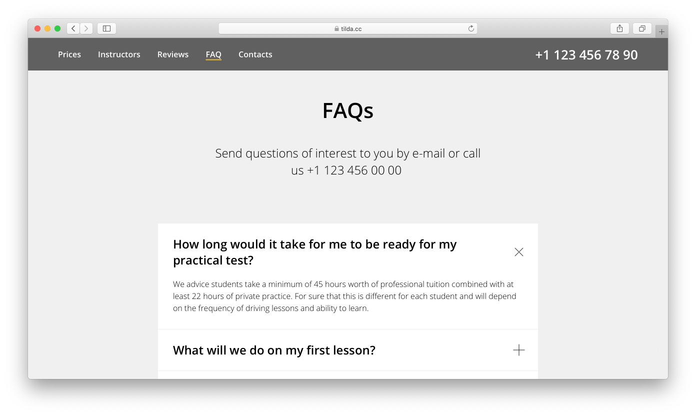 You can find a number of blocks with different questions-and-answers layouts under the “Text block” category.