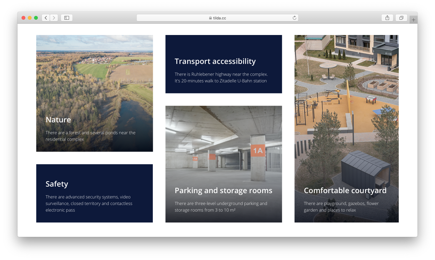 For this part, it’s up to you to choose the best format. You can simply write some text, or add some icons, or a tiled gallery.