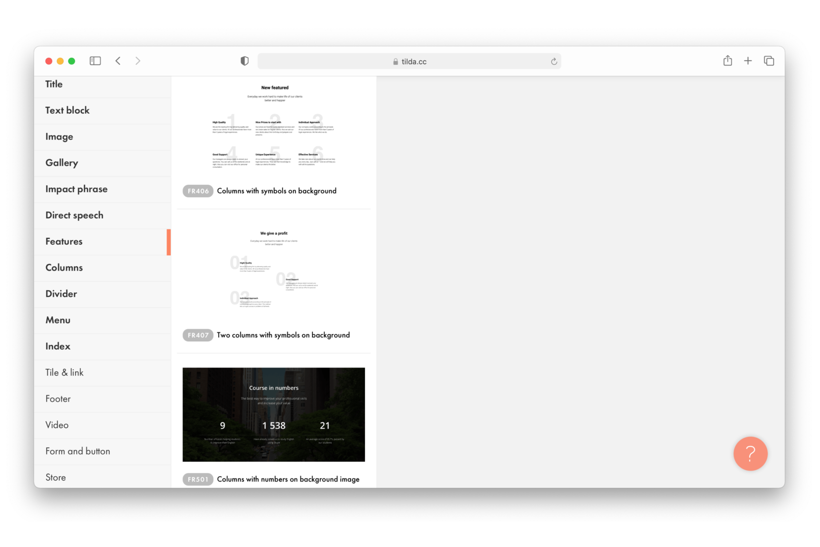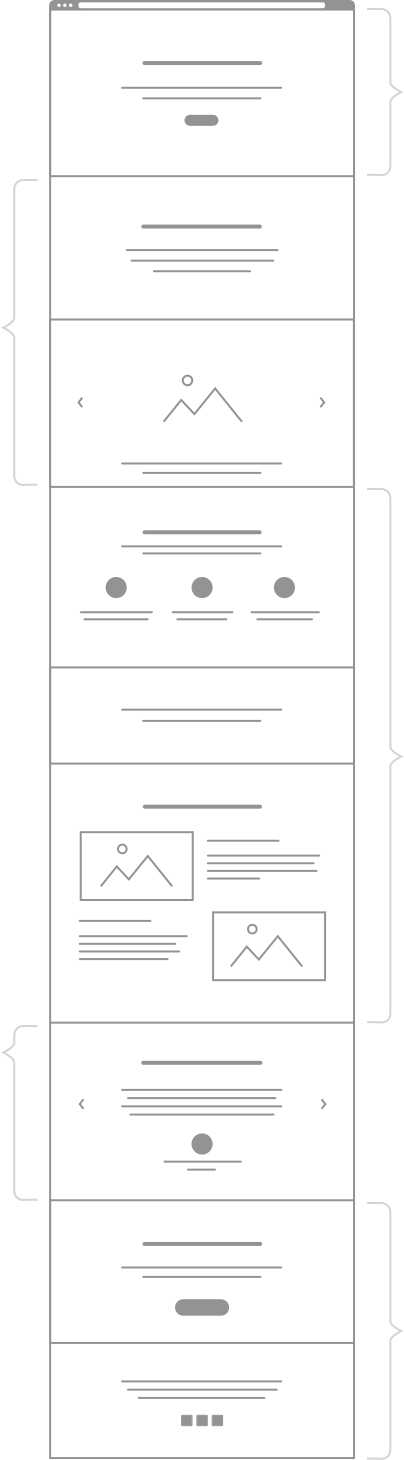 We analyzed a huge number of landing pages and identified recurring features which allowed us to create an algorithm for building an effective landing page. The sections that make up the landing page are what we call functional blocks: