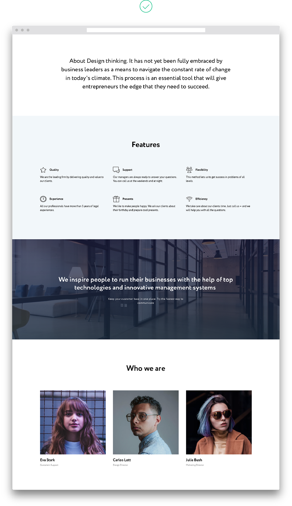 second chapter when we broke down a website's structure—your offer, some info about the project, the feedback, schedule, and call-to-action blocks—all of these are known as sections in a landing page.