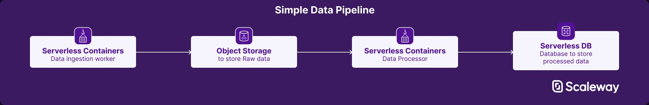 Store raw incoming data on Object Storage and process it with temporary functions to import it into your data warehouse. Use serverless containers or functions to compress and aggregate data, before interesting it into your data warehouse. Do this on-demand via our API, or according to a schedule.