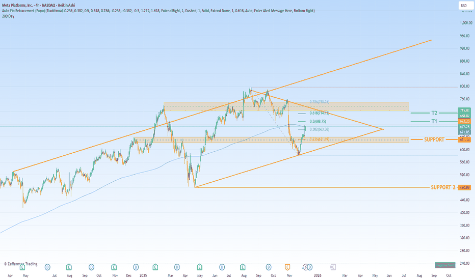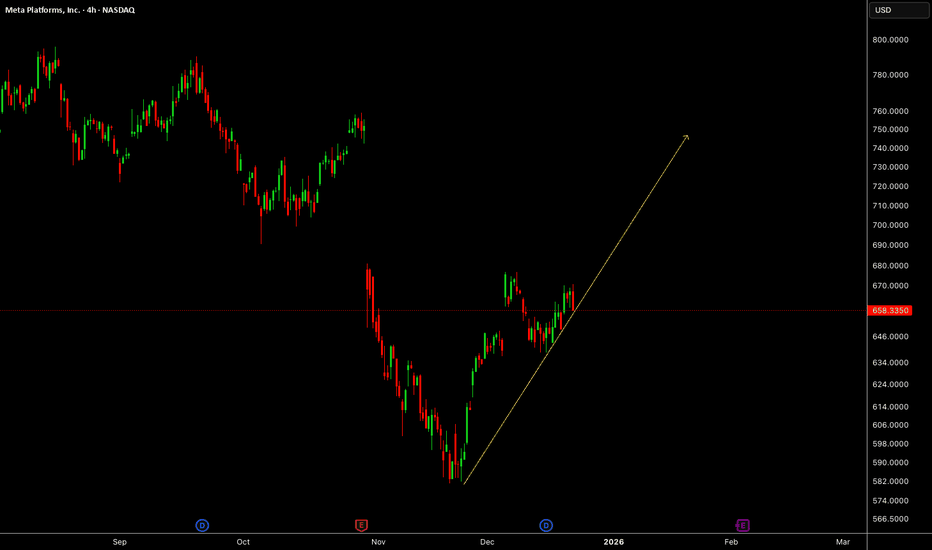 META Regains Direction as Price Rebuilds MomentumMeta Platforms is showing a constructive shift in price behaviour on the 4H timeframe after a corrective phase, with structure beginning to realign in favour of continuation. The recent recovery suggests buyers are gradually reasserting control as the market reassesses growth expectations and broade