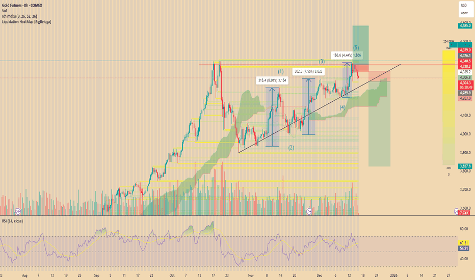 XAUUSD (H4) – Weekly Outlook (Dec 22–26)Buy the dip inside the channel, watch for a short-term correction after Wave 5